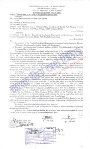 বিজ্ঞ আদালত বাদি ও বিবাদি পক্ষের আইনজীবির বক্তব্য শুনে বীমা উন্নয়ন ও নিয়ন্ত্রণ কর্তৃপক্ষকে কেন বাদির নিয়োগ অনুমোদন করা হয়নি- এর কারন ব্যাখ্যা করতে দশ দিনের সময় দিয়ে রুল জারি করে।