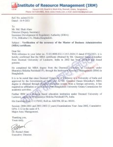 আইডিআরএ’র নামঞ্জুর পত্র: স্মারক নং ৫৩.০৩.০০০০.০৩২.১১.০০২.২৩.৪২ তারিখ ১৯-৩-২০২৪