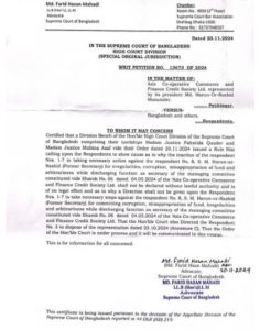 সাবেক সেক্রেটারি হারুনের বিরুদ্ধে ব্যবস্থা নিতে হাইকোর্টের রুল প্রকাশিত: ৭:৫৫ পূর্বাহ্ণ, ডিসেম্বর ৪, ২০২৪ বিশেষ প্রতিনিধি : আজিজ অপারেটিভ কমার্স এন্ড ফাইন্যান্স ক্রেডিট সোসাইটি লিমিটেডের সাবেক সেক্রেটারি এসএম হারুনার রশিদের বিরুদ্ধে ব্যবস্থা নিতে কেন নির্দেশ দেওয়া হবে না তা জানতে চেয়ে রুল জারি করেছেন হাইকোর্ট। সমবায় সচিব, সমবায় অধিদপ্তরের মহাপরিচালকসহ সংশ্লিষ্ট সাতজনকে রুলের জবাব দিতে বলা হয়েছে। বুধবার (২০ নভেম্বর) বিচারপতি ফাহমিদা কাদের ও বিচারপতি মূবিনা আসাফ এর নেতৃত্বাধীন হাইকোর্ট বেঞ্চ এই রুল জারি করেছেন। একইসঙ্গে দুর্নীতি, অর্থ আত্মসাৎ, বিভিন্ন অনিয়ম ও ক্ষমতার অপব্যবহারের সুনির্দিষ্ট অভিযোগ প্রমাণিত হওয়ায় হারুনার রশিদের বিরুদ্ধে ব্যবস্থা নিতে সমবায় অধিদপ্তরে রিট আবেদনকারীর দাখিল করা আবেদন নিষ্পত্তি করতে মহাপরিচালকের প্রতি নির্দেশ দেওয়া হয়েছে। প্রতিষ্ঠানের সভাপতি হারুন-অর রশিদ মজুমদারের করা এক রিট আবেদনের ওপর প্রাথমিক শুনানি নিয়ে এই আদেশ দেওয়া হয়েছে। রিট আবেদনকারীপক্ষে আইনজীবী ছিলেন মোহাম্মদ ফরিদ হাসান মেহেদী। একইসঙ্গে দুর্নীতি, অর্থ আত্মসাৎ, বিভিন্ন অনিয়ম ও ক্ষমতার অপব্যবহারের সুনির্দিষ্ট অভিযোগ প্রমাণিত হওয়ায় হারুনার রশিদের বিরুদ্ধে ব্যবস্থা নিতে সমবায় অধিদপ্তরে রিট আবেদনকারীর দাখিল করা আবেদন নিষ্পত্তি করতে মহাপরিচালকের প্রতি নির্দেশ দেওয়া হয়েছে। প্রতিষ্ঠানের সভাপতি হারুন-অর রশিদ মজুমদারের করা এক রিট আবেদনের ওপর প্রাথমিক শুনানি নিয়ে এই আদেশ দেওয়া হয়েছে। রিট আবেদনকারীপক্ষে আইনজীবী ছিলেন মোহাম্মদ ফরিদ হাসান মেহেদী। SHARES আইন আদালত বিষয়: