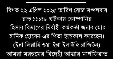এপ্রিল ২৩, ২০২৫ | ১২:৩৩:অপরাহ্ণ |